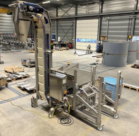 Voor een cake- en koekjesfabrikant bouwden wij een volledig geautomatiseerde toevoerlijn voor deeg. Deze compacte installatie verwerkt efficiënt het deeg vanuit de normwagens (max. 350 kg) tot aan het einde van de deeglijn voor verdere verwerking. De deeg toevoerlijn bestaat uit een normwagenkantelaar, een stortbunker met geïntegreerde deegverkleiner, Z-opvoerband en een pneumatische zwenktrechter.