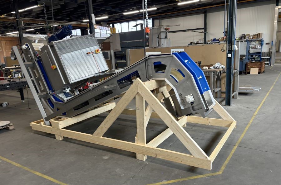 Na verkleining wordt het homogeen verkleinde deeg via de Z-opvoerband omhoog getransporteerd.