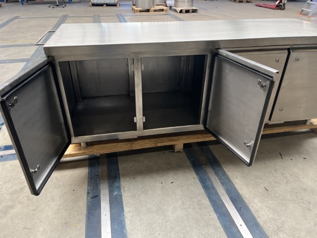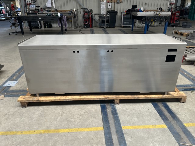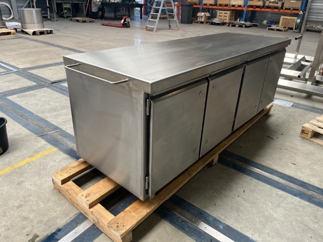 Voor een Duitse bakkerij-machinefabrikant engineerden en bouwden wij een verrijdbare RVS werktafel met kast op maat. Deze was bestemd voor een testlaboratorium van een voedingsfabrikant. Een plaats met hoge hygiëne-eisen. Duurzaam, robuust en functioneel — precies waar het maatwerk van De Jager RVS het verschil maakt.