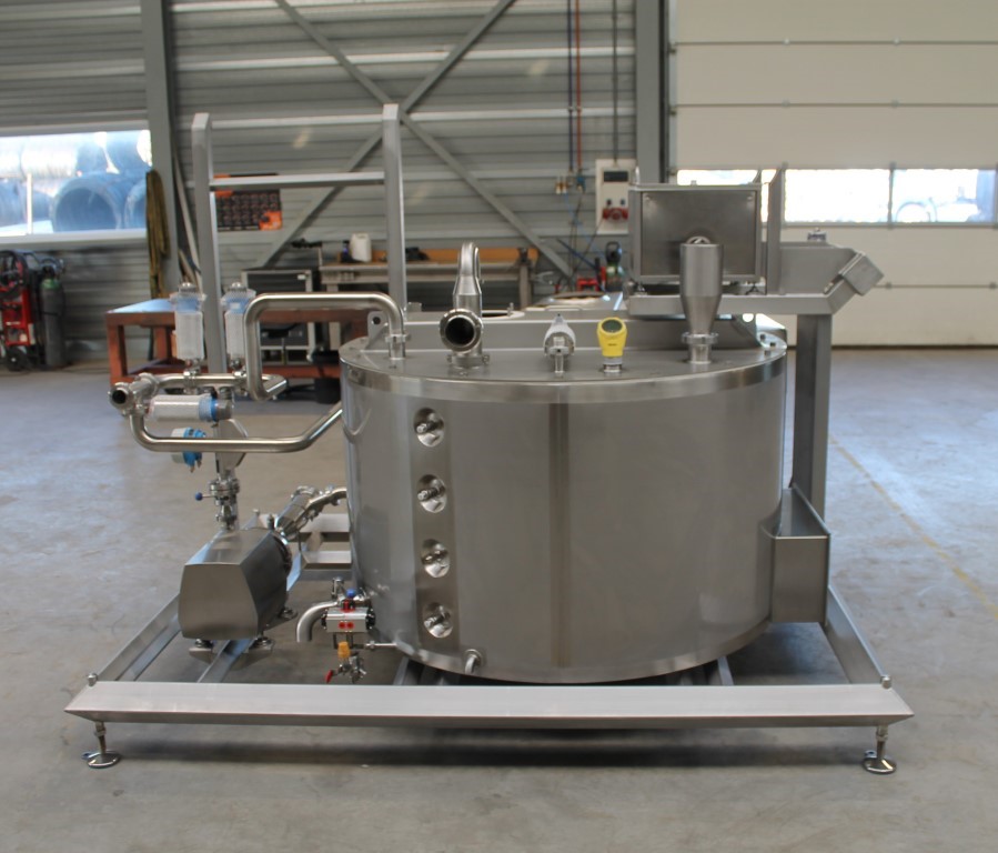 Voor de productie van hoogwaardige voedingsmiddelen is proceszekerheid essentieel. Deze verwarmde mengtank van 1250 liter netto, opgebouwd op een RVS skid, is volledig afgestemd op de specificaties van de klant en biedt een nauwkeurig meng- en verwarmingsproces.